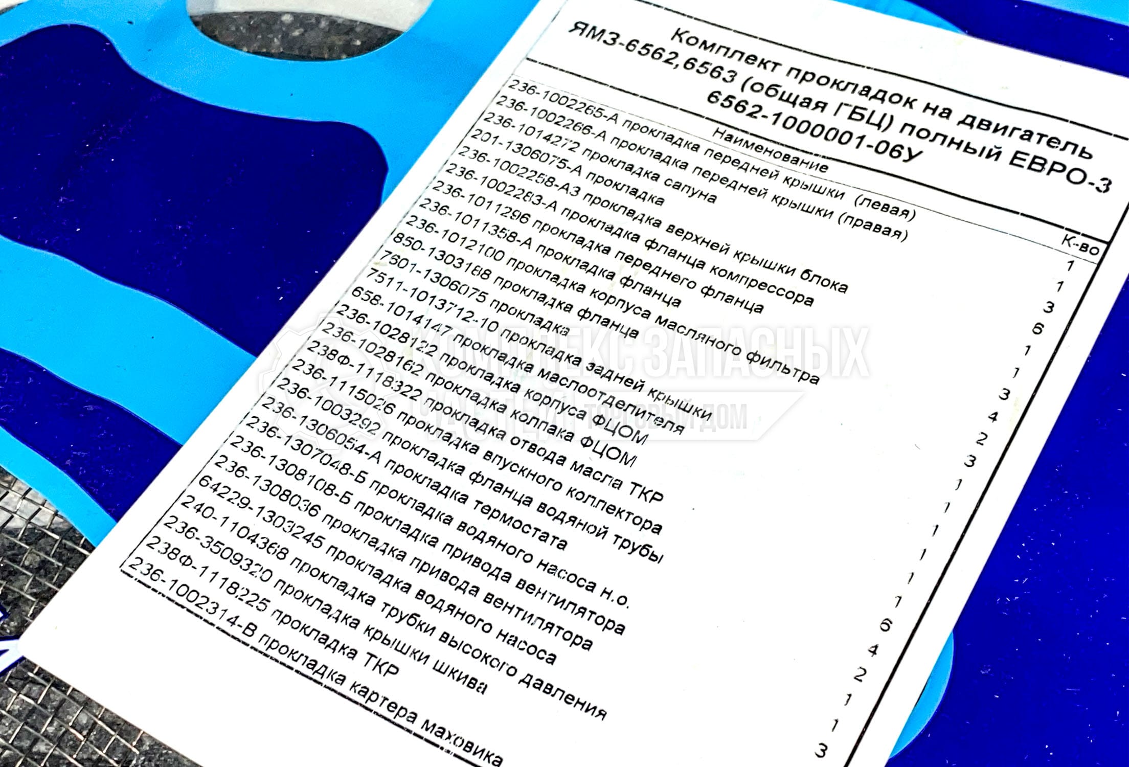 Запасная часть 6562.1000001-0б — Комплект прокладок двигателя ЯМЗ — к грузовым автомобилям МАЗ, КАМАЗ.